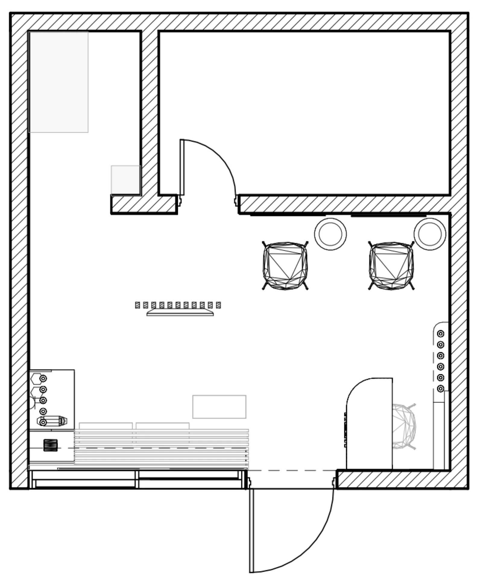 המספרה של דניאל עוצבה מתוך רצון לייצר חלל שקט, נקי ומדויק – כזה שמצד אחד ישרת את הפונקציות המקצועיות הנדרשות, ומצד שני יעניק תחושת רוגע ושלווה ללקוחות. הבחירה בפלטת צבעים מונוכרומטית רכה, יחד עם שימוש בחומרים טבעיים כמו עץ בהיר ובדים בהירים, יוצרת חלל מאוזן, נעים ונטול רעש ויזואלי.